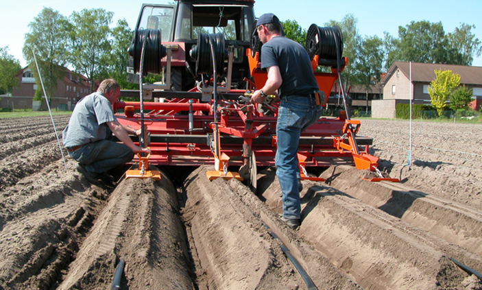 Bilde 2: Dryppslanger utlagt i opphøyde bed, slik at vann og gjødsel kan plasseres tett ved de aktive røttene.
